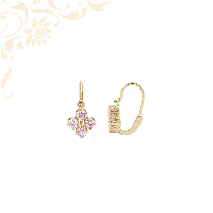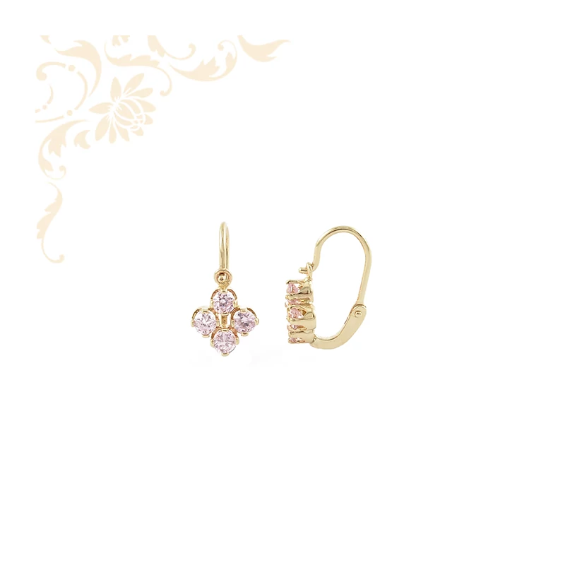 Rózsás ragyogás – 14 karátos arany fülbevaló rózsaszín kövekkel Ez a bájos 14 karátos arany fülbevaló finoman egyensúlyoz a gyermeki kedvesség és a nőies elegancia között. A négy apró, rózsaszín cirkónia kő virágot formáz, amely lágyan csillan meg a fényben, miközben az arany meleg tónusa gyengéd keretet ad neki. Az elöl kapcsos zár kényelmes és biztonságos, ezért ideális választás gyermekeknek vagy fiatal lányoknak, de finom mérete és harmonikus formája miatt felnőtt női viseletként is megállja a helyét. Ez az ékszer a szelíd nőiesség, az ártatlanság és az öröm apró szimbóluma. Miért szerethető? A rózsaszín ragyogás, ami mosolyt csal az arcra – egy apró ékszer, amelyben a kedvesség és az elegancia kéz a kézben jár. Méret: 14 mm Súly: 1,34 gr |