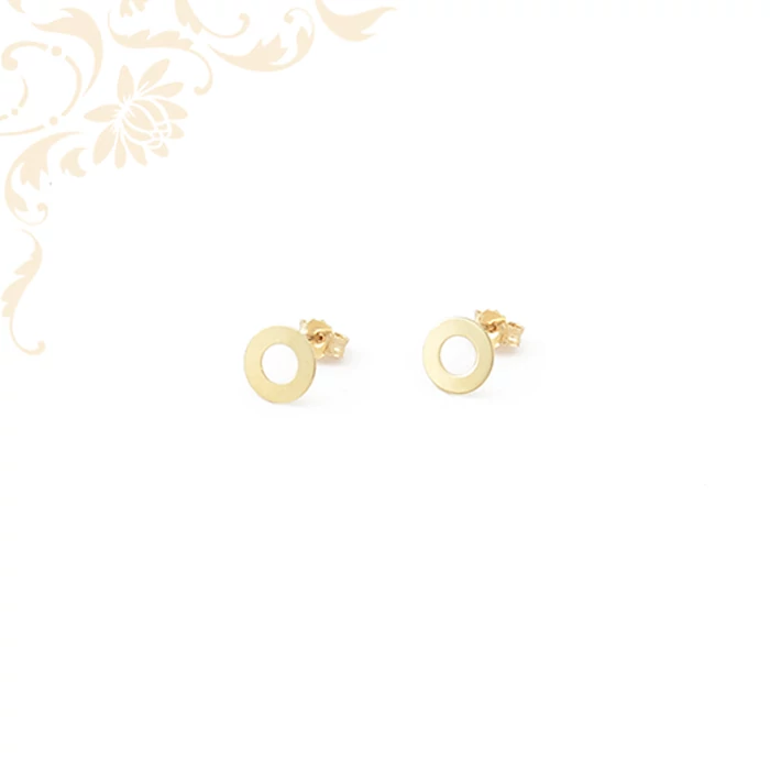 Áttört, kör alakú arany fülbevaló. Az ékszer 14 karátos sárga aranyból készült, stekkeres záródással kapcsolható. Igen szép és mutatós viselet. Átmérő: 8 mm. Súly: 0,66 gr. |