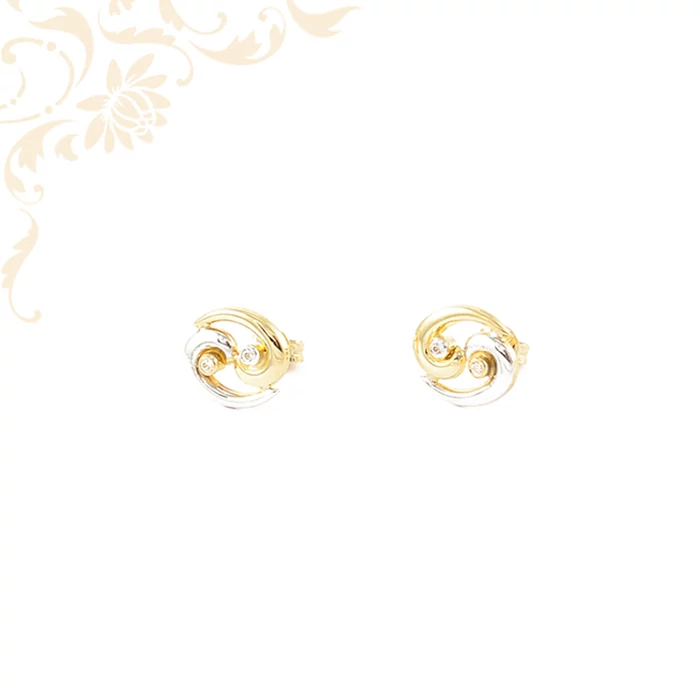 | Két tónusú női arany fülbevaló, cirkónia kővel díszítve. | |