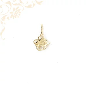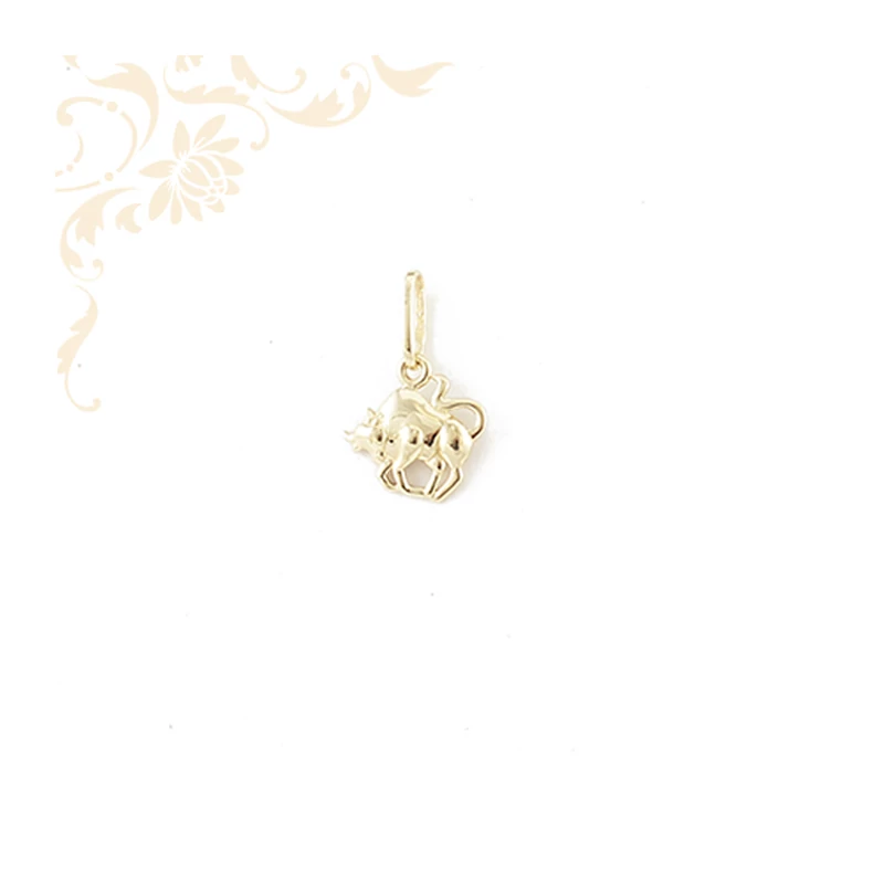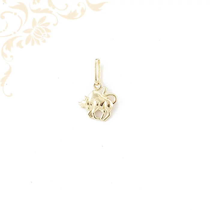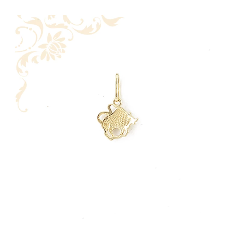 Bika formájú horoszkópos arany medál, melynek a hátoldala homorú. Az ékszer 14 karátos sárga aranyból készült. Nagyon mutatós viselet. Méret: 10 mm. Súly: 0,55 gr. Az ékszerről 2 db termékfotó készült. |