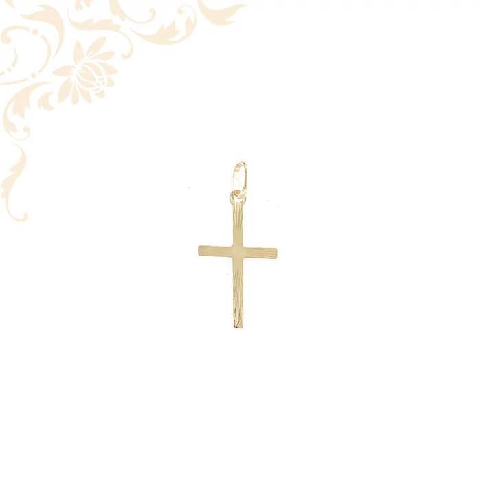 A hit fénye: 14 karátos arany metszett kereszt medál Ez a arany medál sokkal több, mint egy egyszerű ékszer; a hit, az erő és a védelem időtlen szimbóluma. Viseld a szívedhez közel, mint a legfontosabb ígéretek csendes emlékeztetőjét. A klasszikus, 14 karátos sárga arany kereszt medál a hagyományos formát ötvözi a finom, modern részletekkel. A dizájn, ami beragyogja a napodat: