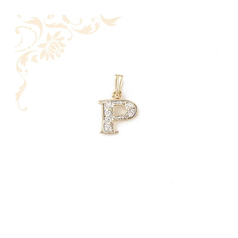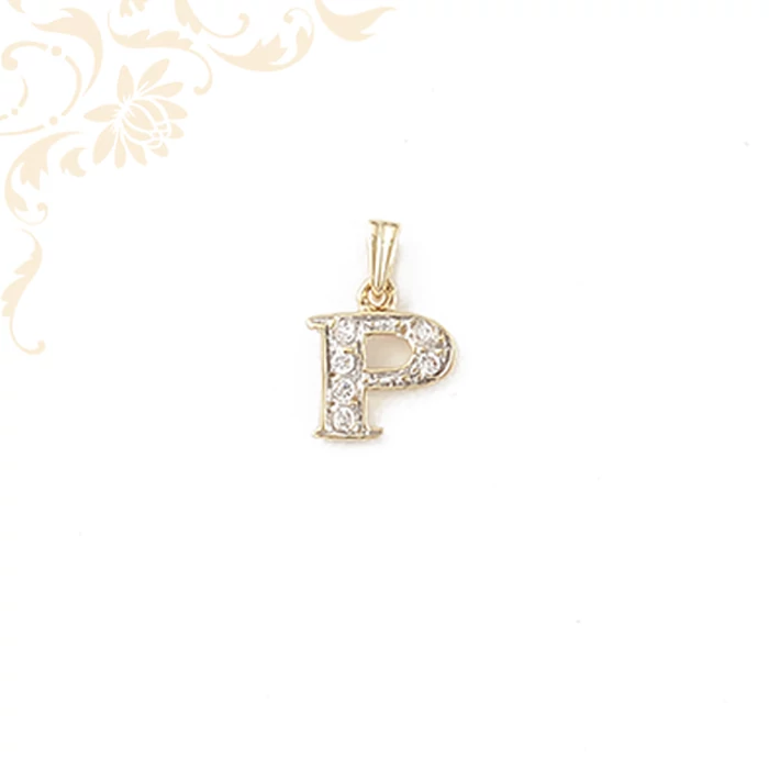 | P betűt mintázó arany medál, fehér színű cirkónia kövekkel ékesítve. Az ékszer 14 karátos sárga aranyból készült. Ajándéknak is kitűnő választás. Méret: 10 mm. Súly: 0,66 gr. | |