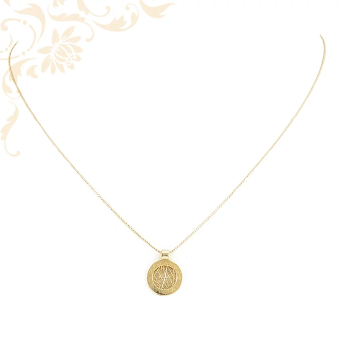 14 karátos arany nyaklánc geometrikus medállal – az aranyba zárt harmónia Ez a 14 karátos arany nyaklánc különleges energiát hordoz: letisztult eleganciája mögött mély szimbolika rejlik. A kör alakú medál felületét metsző vonalakból álló, összetett geometrikus mintázat díszíti, amely számos egymásba illeszkedő háromszöget és finom formát rejt. Ez a finom struktúra az élet belső rendjét és az egyesülés misztériumát idézi meg – mintha az arany maga őrizné a világegyetem csendes harmóniáját. A könnyed arany nyaklánc tökéletesen kiegészíti az arany medál szimmetriáját, így a darab egyszerre modern és spirituális, visszafogott és mély értelmű. Egy ékszer azoknak, akik szeretik, ha szépségüknek jelentése is van. Fény és forma, arany és jelentés – mindez egyetlen ragyogásban egyesül. Méret: 42 cm Súly: 3,77 gr |