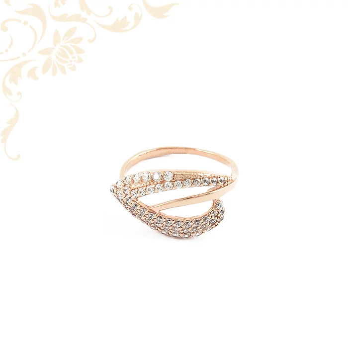 Fényhullám a kézfejen: rozéarany statement gyűrű Léteznek ékszerek, amelyek csak díszítenek, és vannak olyanok, amelyek önálló stílusnyilatkozatok. Ez a gyűrű egyetlen, áramló mozdulattal ragadja meg a tekinteted, és az elegancia új dimenzióját nyitja meg számodra. Ez a lenyűgöző, rozé arany gyűrű a modern ékszertervezés mesterműve. A különleges, csavart, lefelé keskenyedő forma olyan, mintha folyékony aranyból formált hullámokat ábrázolna, amelyek finoman ölelik körbe az ujjadat. A luxus és a dinamika tökéletes játéka:
