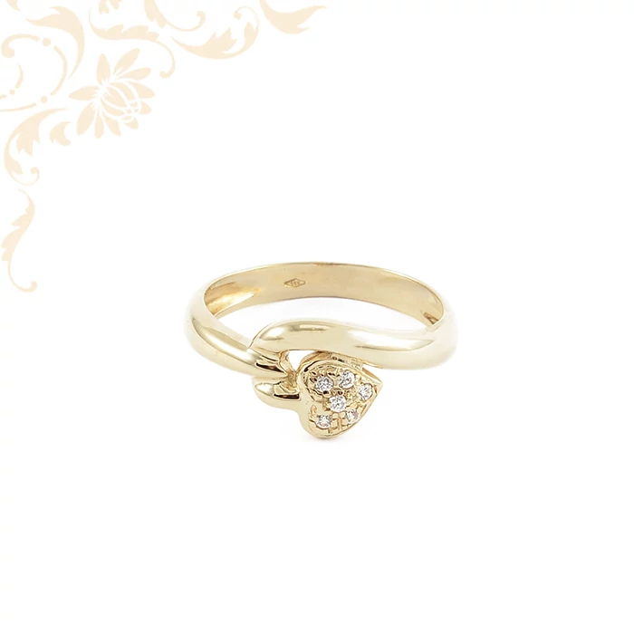 Ölelő fény – 14K arany gyűrű szív motívummal Ez a gyönyörű 14 karátos arany gyűrű olyan, mintha egy meleg, kedves érzést formáltak volna ékszerré. A gyűrű finoman ívelt, lágy vonalvezetése az ujj köré simuló ölelés puhaságát idézi. Elöl a szív motívum szinte a gyűrű ívéből nő ki, mintha a szeretet maga bontakozna ki belőle – apró, ragyogó kövek öltöztetik ünneplő fénybe, melyek minden mozdulatnál szikrázó életre kelnek. A szív nem különálló elem, hanem a gyűrű szerves része: egy finom gesztus, amely azt közvetíti, hogy a szeretet nem kívülről kerül ránk – belülről sugárzik, és lassan, óvón fonja körbe a mindennapjainkat. A fénylő díszítés finom eleganciát kölcsönöz, miközben könnyed játékosságot is hordoz magában, mintha minden apró kő egy-egy emlék ragyogását őrizné. A gyűrű tökéletes választás mindenkinek, aki a finom nőiességet kedveli, és szereti, ha ékszere nem csak szép, hanem érzelmet is mesél. Bármelyik ujjra kerül, jelenlétével gyengéden emlékeztet: a szeretet egyszerű, tiszta, és mindig ott van velünk – még akkor is, amikor nem mondjuk ki. Finom ragyogás, amely minden pillanatot egy kicsit szebbé tesz. Méret: 55 Súly: 3,11 gr |