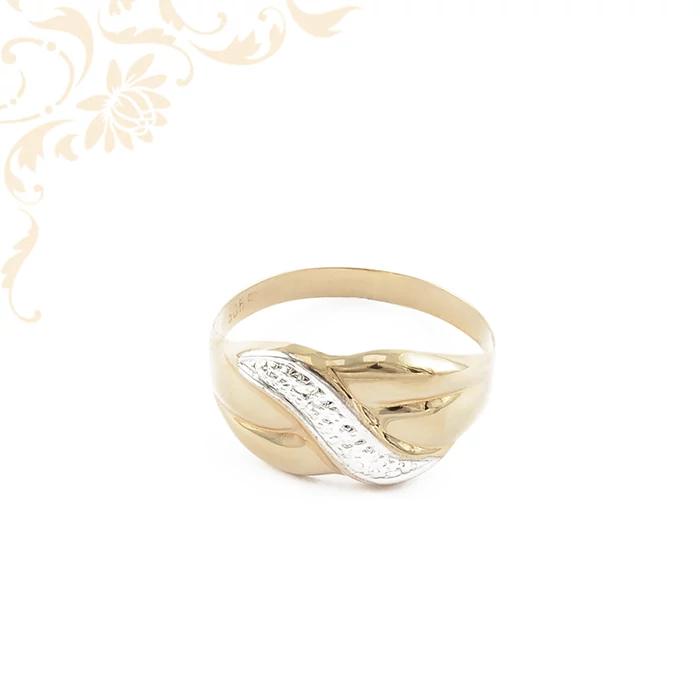 Aranyló Hullám – 14 karátos női arany gyűrű fényjátékkal Ez a 14 karátos arany gyűrű a finom ívek és az egymásba simuló formák játéka. Kialakítása lágyan áramló, mintha két aranyló hullám találkozna egy csendes pillanatban. A fényesre polírozott arany felület mellett egy ródium díszítésű, világosabb sáv húzódik végig, amely különleges kontrasztot és elegáns mélységet ad a kompozíciónak. A formák nem élesek, nem hivalkodók – inkább ölelőek. Olyan, mint amikor két gondolat összeér, és egy harmonikus egésszé válik. A ródium betét finoman strukturált felülete megtöri a fényt, így minden mozdulatnál más árnyalatot villant fel. Ez a gyűrű nem a harsány ragyogásról szól, hanem a kifinomult jelenlétről. Azokról a nőkről, akik tudják, hogy az igazi elegancia nem kiált, csak csendesen, magabiztosan létezik. Amikor az arany ívek és a ródium díszítés találkoznak, megszületik egy időtlen harmónia, amely egyszerre modern és örökérvényű. Méret: 57 Súly: 0,88 gr |