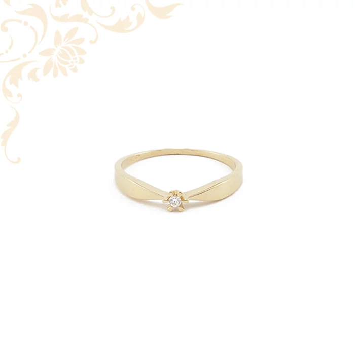 Női köves arany gyűrű, fehér színű cirkónia kővel ékesítve. Az ékszer 14 karátos sárga aranyból készült. Ideális választás jegygyűrűnek, lánykérő gyűrűnek és kísérő gyűrűnek karikagyűrű mellé. Nagyon szép viselet. Méret: 54. Súly: 1,54 gr. |