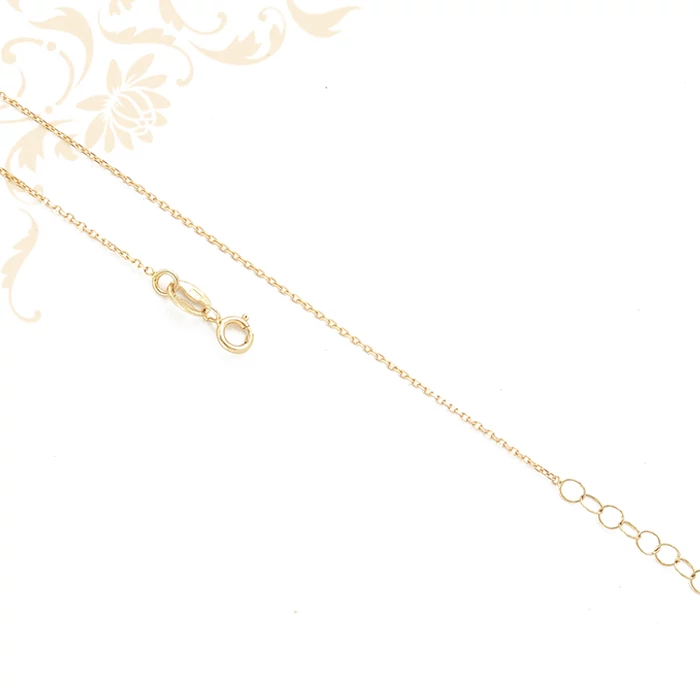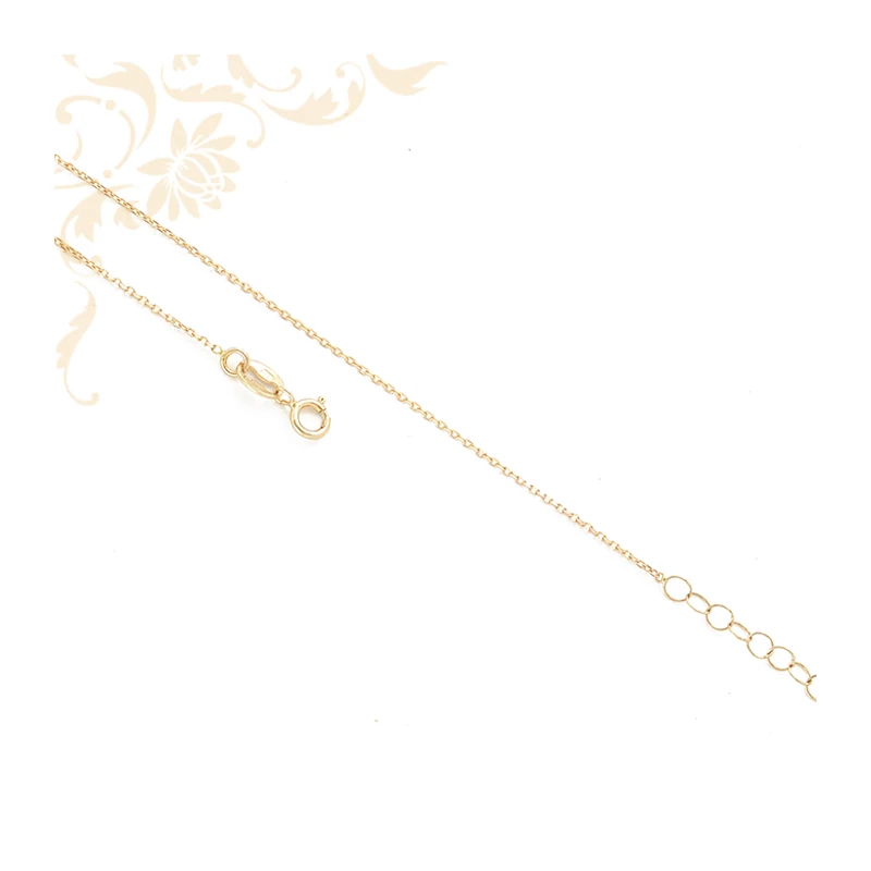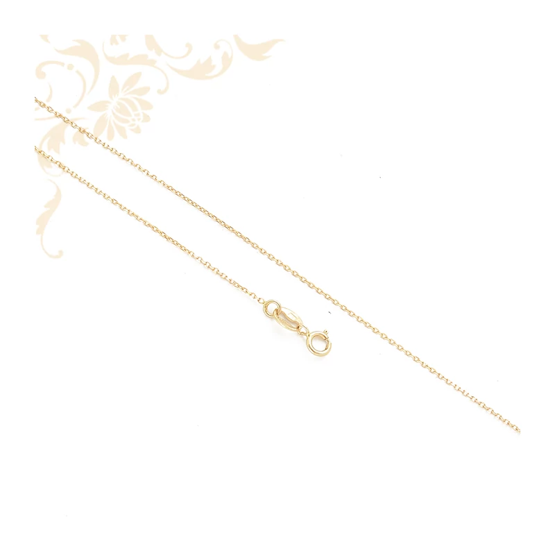 Kis súlyú, anker fazonú női arany nyaklánc. Az ékszer 14 karátos sárga aranyból készült. Hossz: (45) 42 cm + 3 cm-rel hosszabbítható. Súly: 1,04 gr. A hosszabbítható rész a fotó jobb oldalán látható. Az ékszerről 2 db termékfotó készült. |